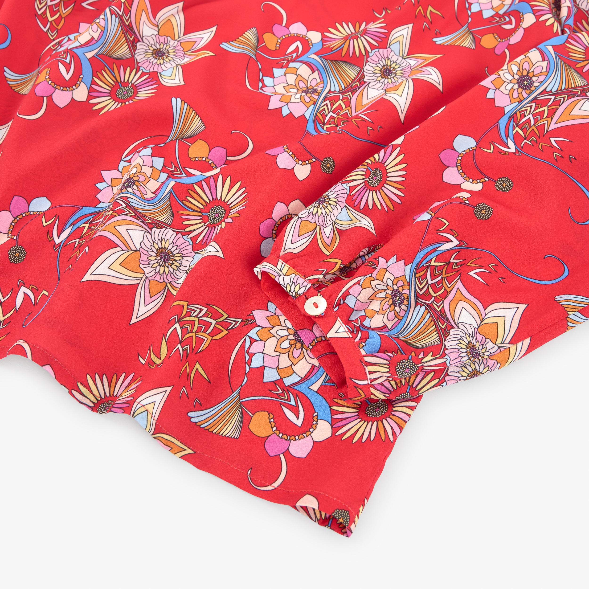 Un homenaje a la fuerza del sol siciliano y al magnetismo del Mediterráneo. Esta blusa transforma la calidez del instante en una paleta de rojos intensos que fluyen con el cuerpo, fusionando el carácter del diseño de autor con una elegancia atemporal.