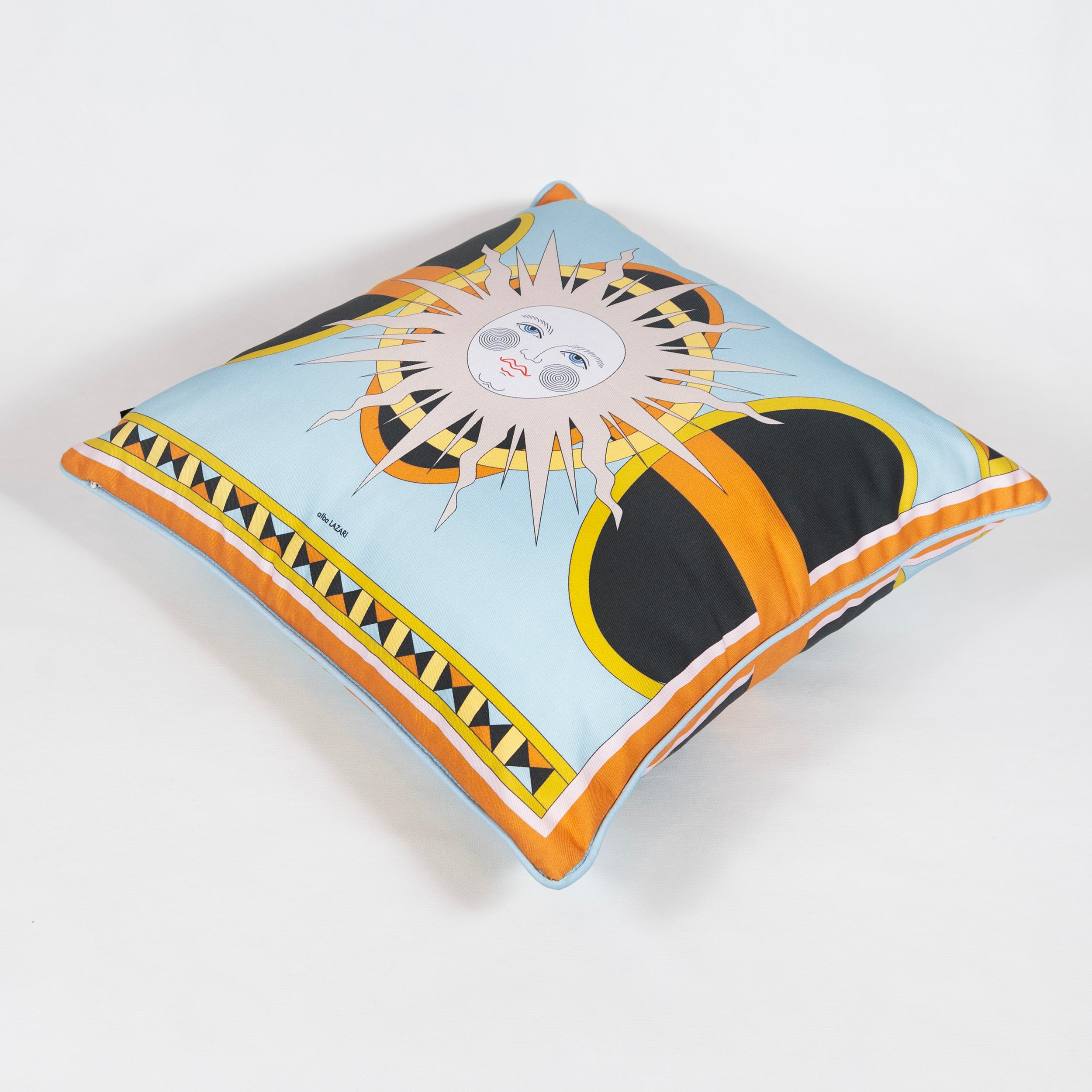 Este cojín decorativo presenta un estampado exclusivo de doble cara diseñado por Alba LAZARÍ.