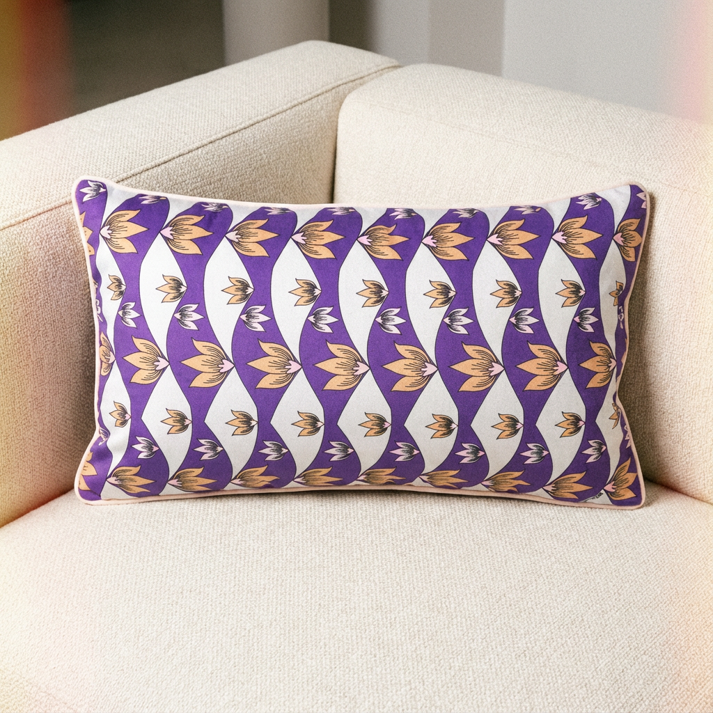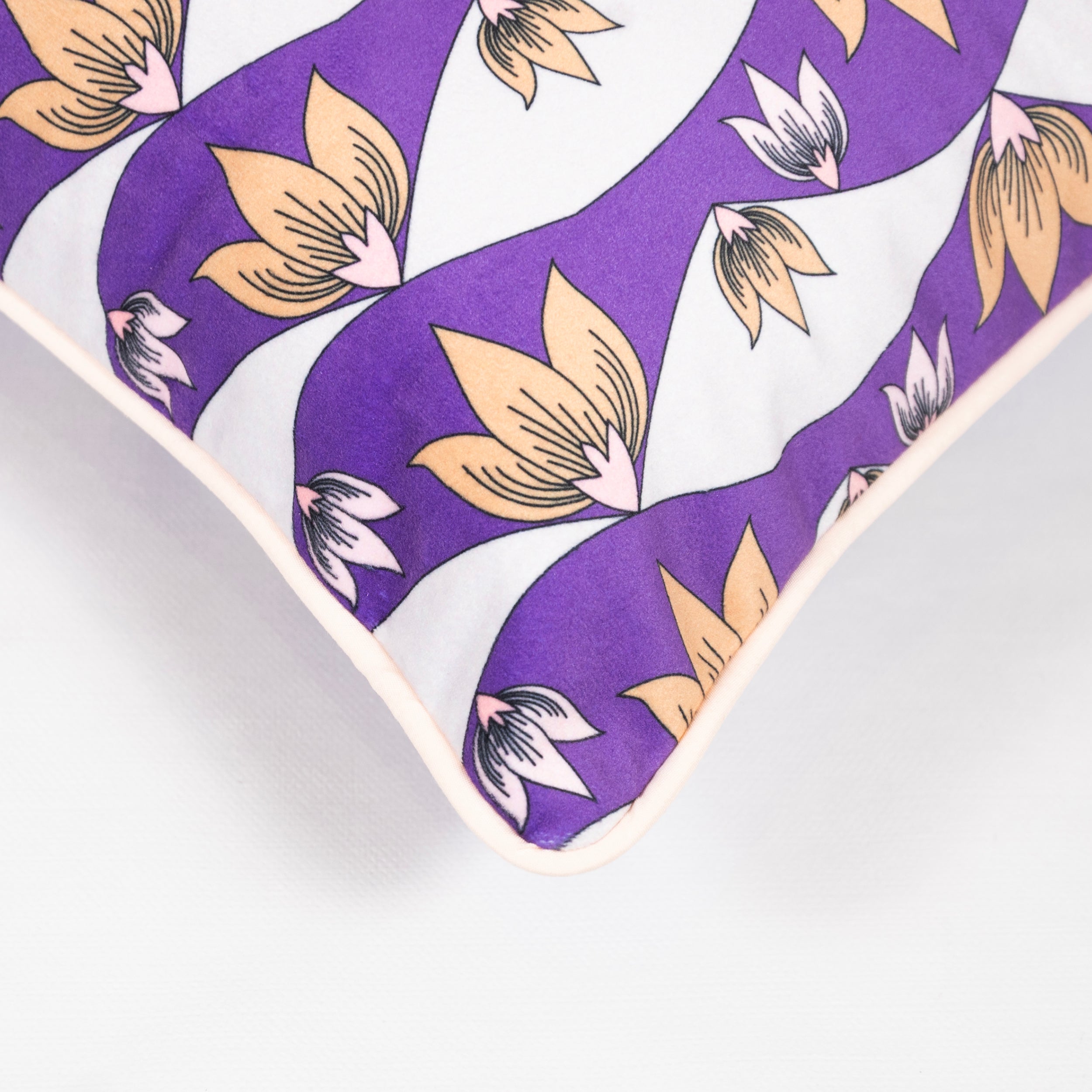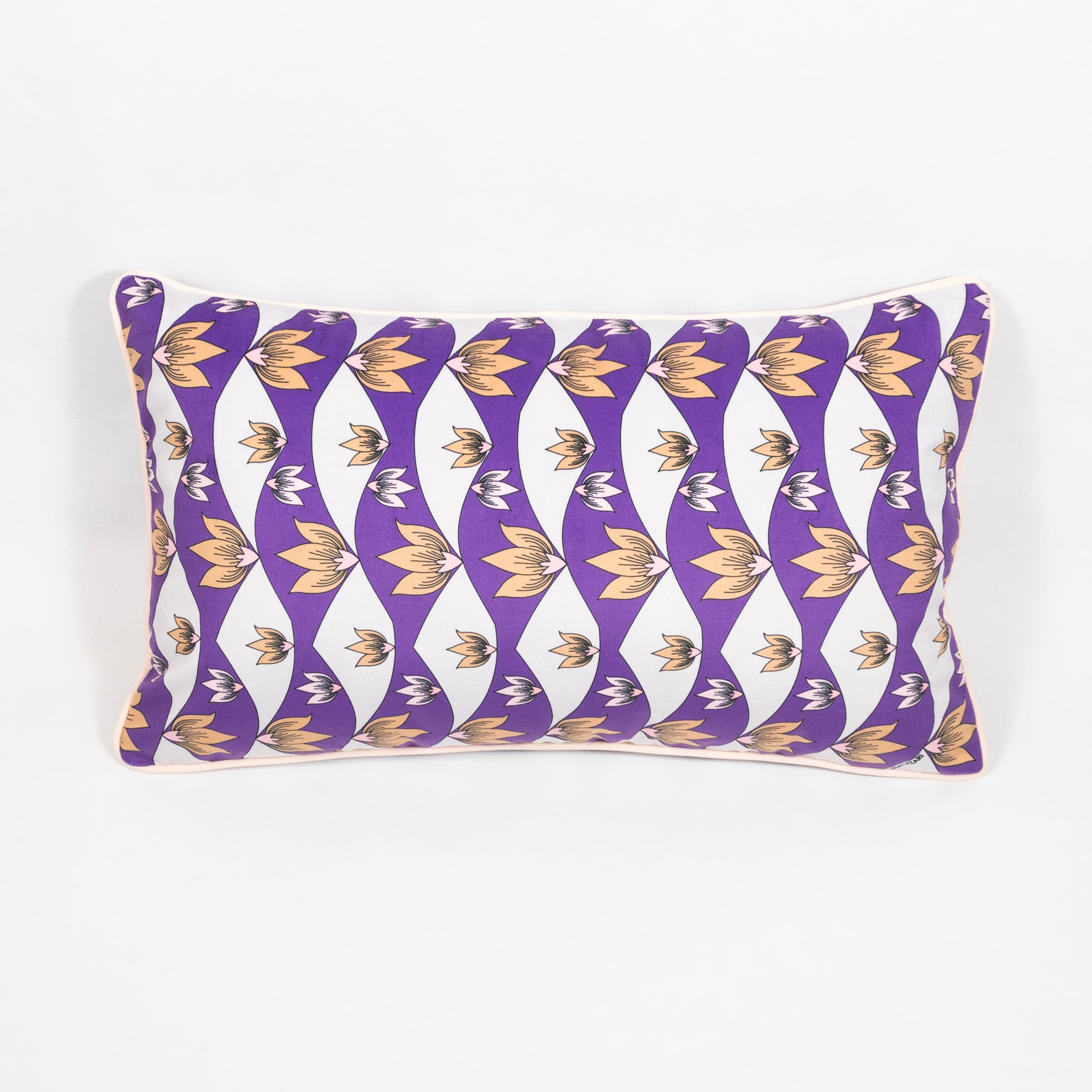 Este cojín decorativo presenta un estampado exclusivo de doble cara diseñado por Alba LAZARÍ.