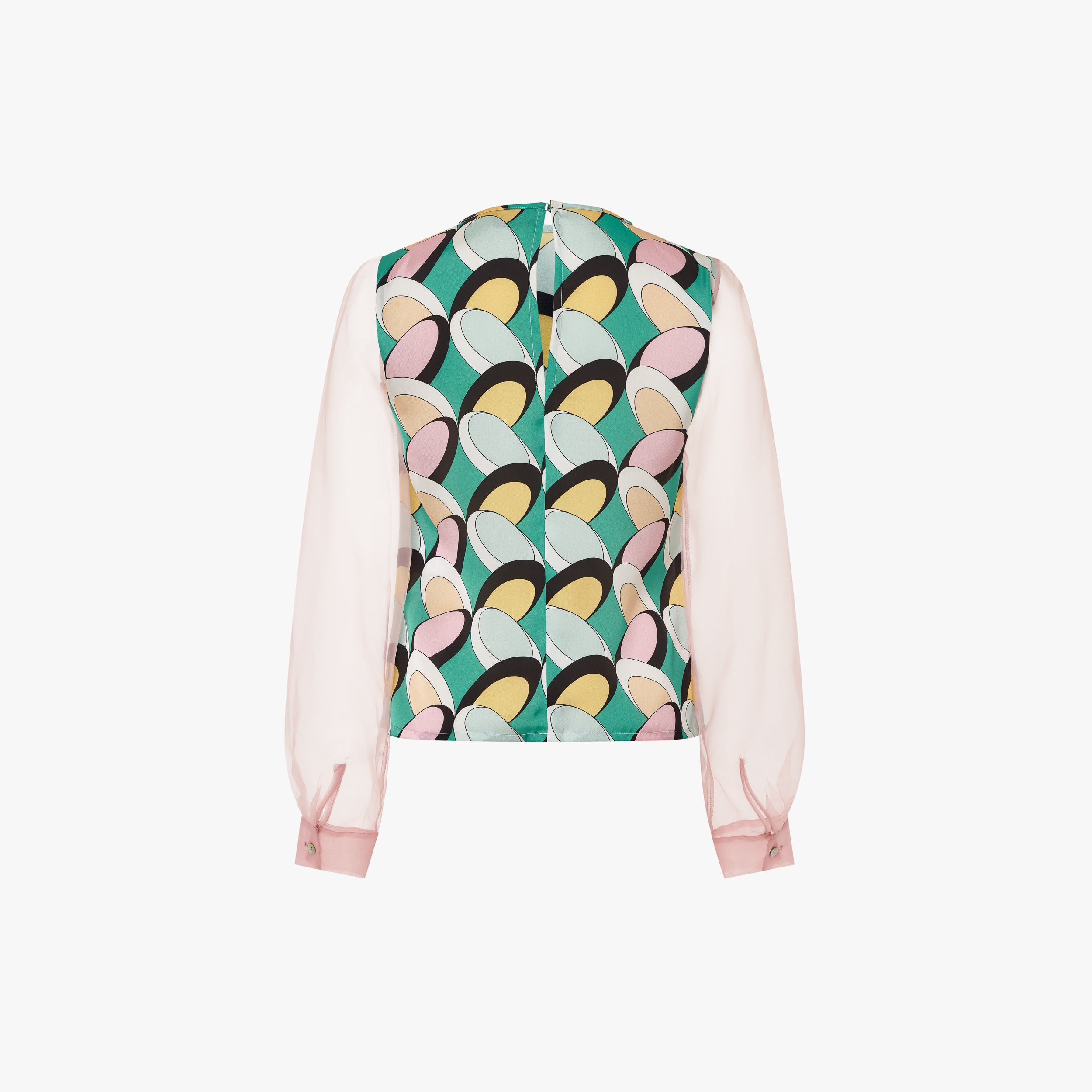 Inspired by the fluidity of modern Japanese architecture, this blouse translates the interlocking circle print into a play of light and contrast upon the organza. A silhouette created to elevate one's presence and celebrate femininity.