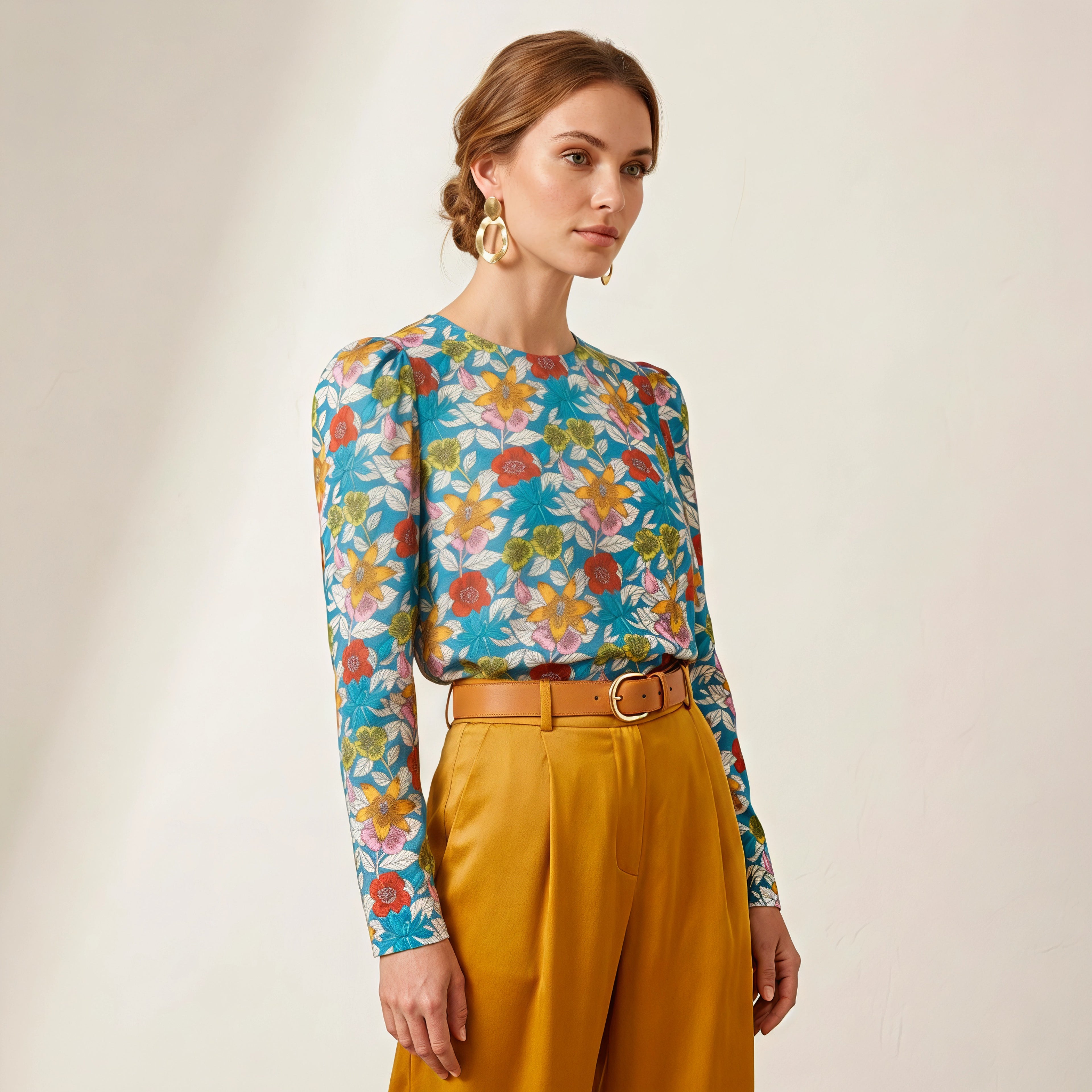 – Corte: Silueta fluida de cuello redondo con mangas de volumen abullonado