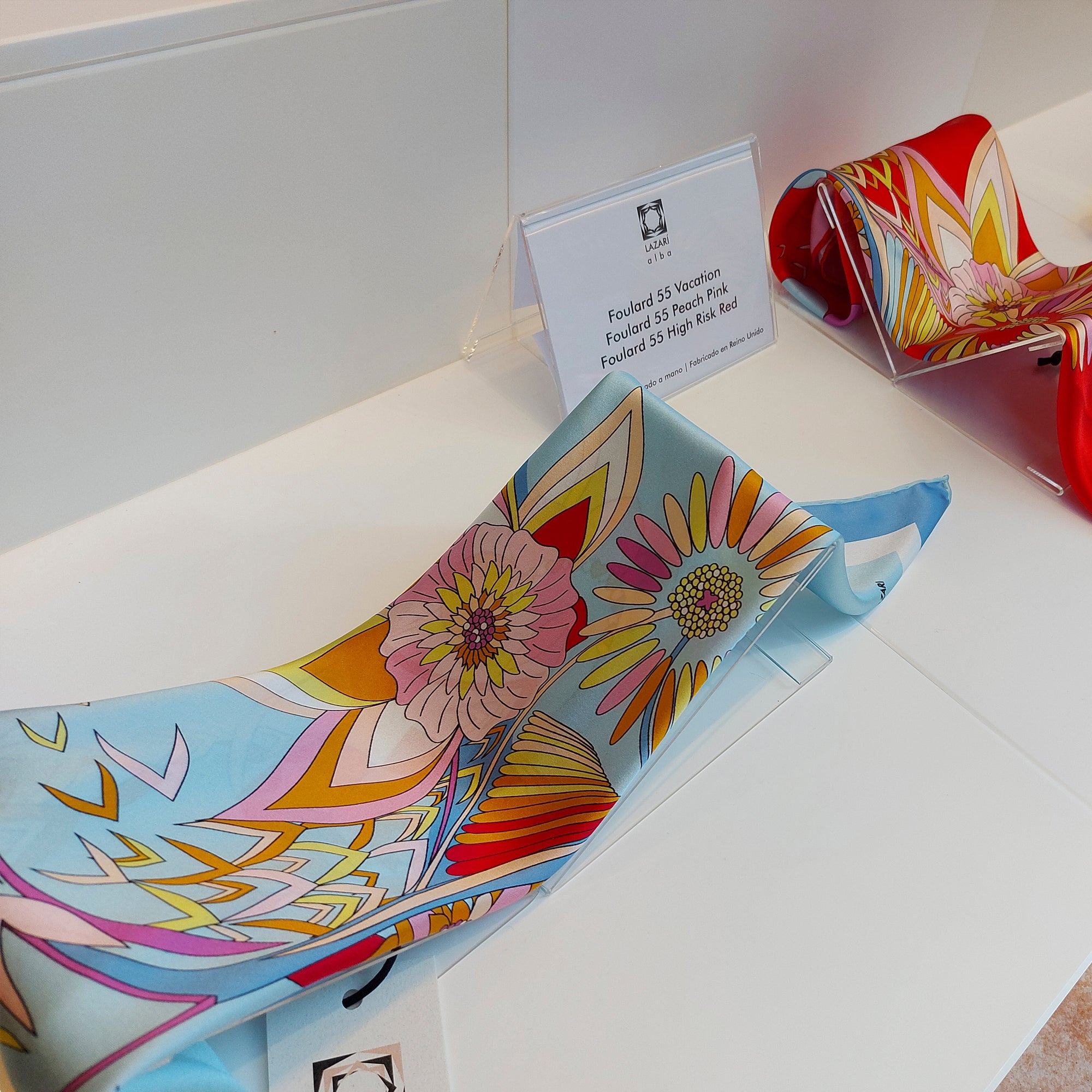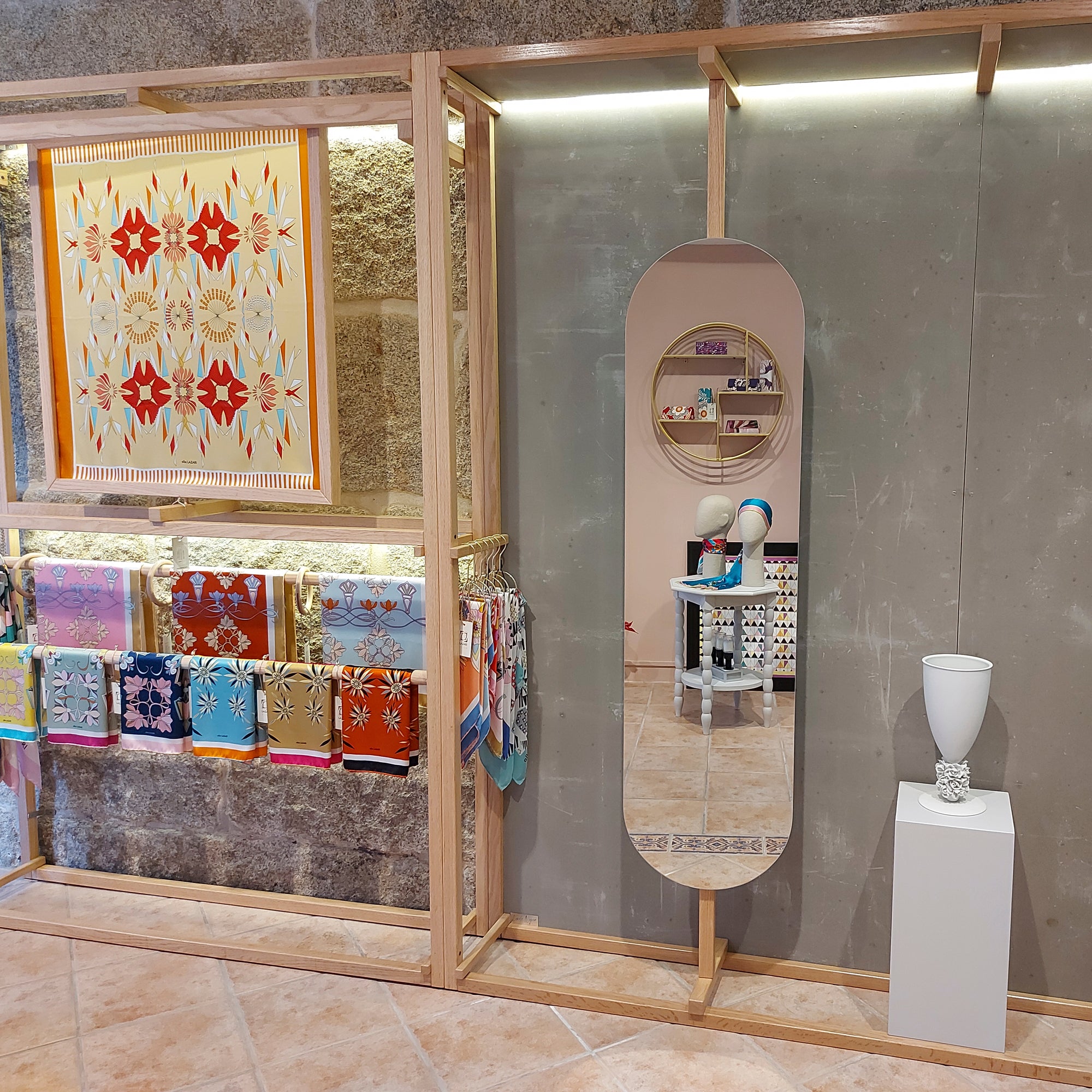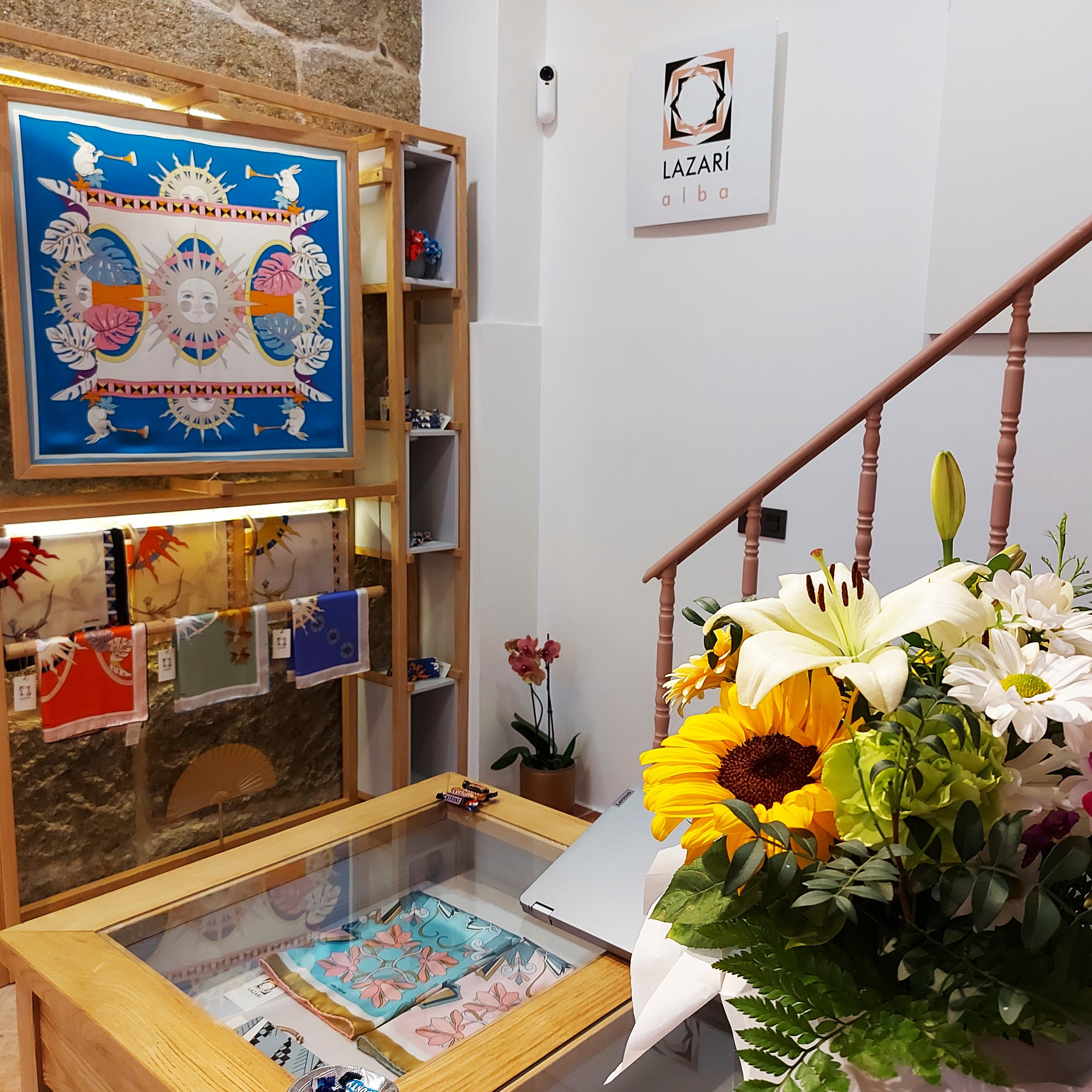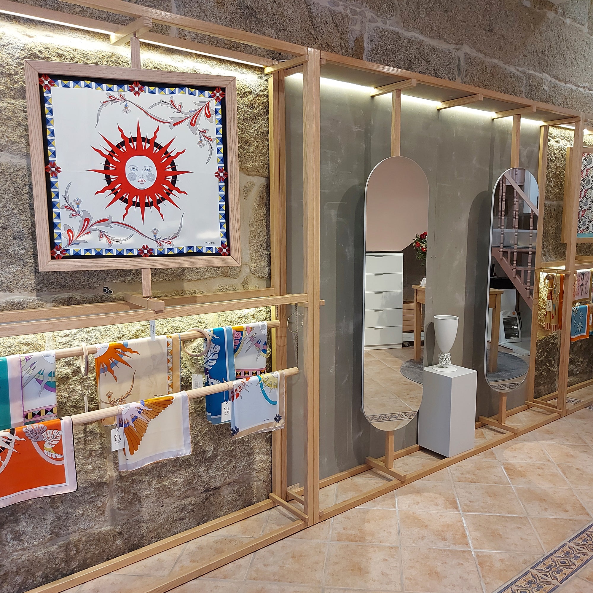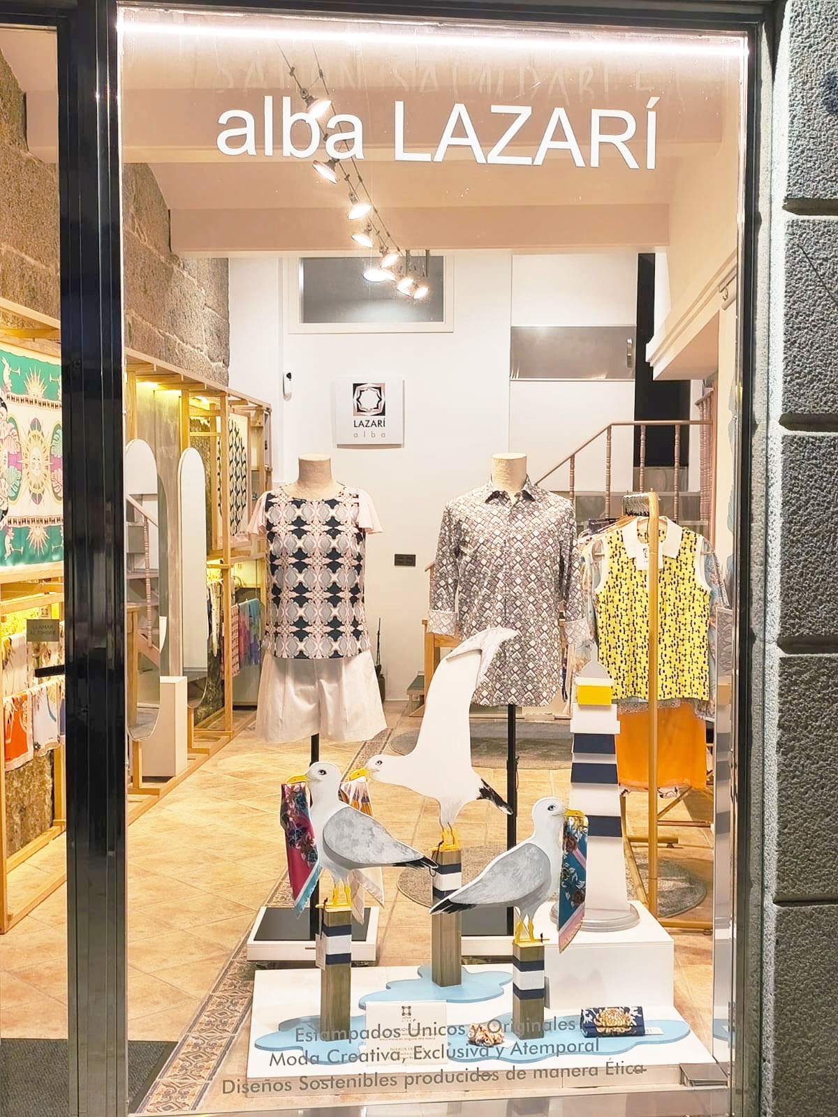 Ubicado en Cangas, Galicia, nuestro showroom es el epicentro creativo de Alba LAZARÍ. Un espacio donde el diseño textil y las Bellas Artes se fusionan: desde las paredes que exhiben lienzos de seda hasta el atelier donde la diseñadora proyecta cada colección. Un centro de creación donde el arte se vuelve tangible para la moda y el interiorismo.